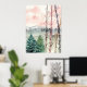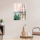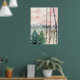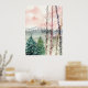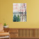 Birch tree landscape painting of mountains in winter watercolor realistic modern art fall autumn colours include pink white green light dark blue brown grey snow mountain paintings and art prints