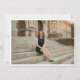 This graduation announcement features a large landscape photo with your name and "Graduate" in the top corners and your class year and school in the bottom corners — a clean, editorial layout that puts the photo front and center. The back has a second photo.
