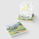 The coasters are gorgeous, a quality feel and heavy weight. They look like a precious archeological find. A rustic stone juxtaposed with a modern floral black and white print. I like the way the print goes slightly imperfect on the cut stone edges giving them a kind-of natural beauty.