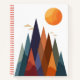 A group of mountains with a sun in the background, vector art, geometric abstract art, vertical wallpaper, green and orange theme, moon light in the top background, earthy colours.