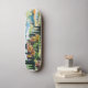 Landscape with town and cypress trees skateboard