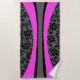 Charcoal Grey, Black and Fuchsia Colorway.  Laniakea Beach is a popular surf spot on the North Shore of Oahu, Hawaii. It is known for easy to ride waves and the Hawaiian green sea turtle. Our design is reminiscent of a seventies surfboard or skimboard. We combined competition stripes and a pareau print of hibiscus flowers. This design comes in several colorways.