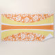 Papaya and Banana Colorway.  Laniakea Beach is a popular surf spot on the North Shore of Oahu, Hawaii. It is known for easy to ride waves and the Hawaiian green sea turtle. Our design is reminiscent of a seventies surfboard or skimboard. We combined competition stripes and a pareau print of hibiscus flowers. This design comes in several colorways.
