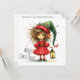 Spread holiday joy with a festive and quirky design featuring a charming Christmas elf dressed in a red polka-dot dress, striped stockings, and a tall green hat with a pom-pom. Holding a glowing lantern and surrounded by delicate snowflakes, this whimsical character brings warmth and wonder to your seasonal message. Her playful pose and colourful outfit capture the spirit of Christmas with a touch of fantasy. On the reverse side, the cheerful greeting “Lanterns lit and candy stripes near—may your holidays glow with peppermint cheer!” is included with the sender’s name, offering a heartfelt and personal message perfect for sharing holiday magic. Ideal for those who love imaginative charm and elf-inspired delight.