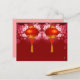 Two traditional lanterns with peach blossoms on red background. Design on horizontal Holidays postcard with date and text to customise. You can easily change text (font, colour, size and position) by clicking the customise button. Available in greeting card and more... Perfect for all Tet Vietnamese New Years.