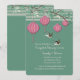 Four, hanging, Chinese paper lanterns are featured hanging from a bamboo branch. Two birds fly over your personalisation in this delightful invitation. Suitable for just about any happy occasion. Want to save money? Print this invitation on the basic, square corner paper.