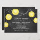 Yellow party lanterns on an illustrated chalkboard background accent this couple's shower invitation, that can easily be changed to a bridal shower, wedding shower or engagement party. Just contact us if you need help with that. If additional pieces are needed in this collection, just let us know at prettyfancyinvites@gmail.com.