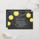 Bright yellow, party lanterns on an illustrated chalkboard background accent the interesting type of this wedding invitation. If additional pieces are needed in this collection, just let us know at prettyfancyinvites@gmail.com.