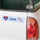 Lao heart-shaped flag plus map with editable text on a durable 4mil thick vinyl bumper sticker.