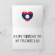 Beautiful design includes happy balloons and ticker tapes with the words "Happy Birthday", covered in the colours of the Laos flag. Design is finished with the heart in the Laos flag colours and the Birthday message. Elements are fully customisable using "Customise it!" feature. This colourful birthday card is the perfect present for your friend from Laos. © CountriesOfTheWorld