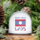 Personalised snow globe featuring the red, white and blue Laotian flag with the word LAOS underneath, also in the colours of the flag. Above, a place for a name in blue letters, yours for a personalised look or someone else's for a thoughtful gift. Lovely for a holiday gift or stocking stuffer.