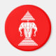 The flag consists of three horizontal strips, middle blue strip is twice the height of the top and bottom red stripes. In the middle is a white disc, the diameter of the disc is 0.8 times the height of the blue stripe. The flag ratio is 2:3. The national flag of Laos was adopted in 1975, when the country became a people's republic. It is one of the few Communist flags that does not use the five-pointed star as an emblem. This flag replaced the original flag of Laos, which was red, with a triple-headed white elephant on a pedestal beneath a parasol. This expressed the ancient name of the country, "Land of a Million Elephants," and dated from the 19th century. From 1953 onward the royal government waged war with the Pathet Lao, whose flag was blue with a white disc and red borders at the top and bottom. From 1973-1975, the Pathet Lao formed part of the government coalition, before assuming power directly and prompting the abdication of the king. Their flag was adopted as the national flag. In the centre is a white disc symbolising the unity of the people under the leadership of the Lao People's Revolutionary Party and the country's bright future. It is also said to represent a full moon against the Mekong River. The red stripes stand for the blood shed by the people in their struggle for freedom, and the blue symbolises their prosperity.