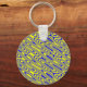 This keychain features a swirly blue and yellow abstract pattern. If you stare at it carefully it looks as though it is moving.