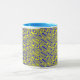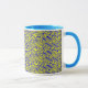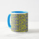 This mug features a swirly blue and yellow abstract pattern. If you stare at it carefully it looks as though it is moving. The design is shown on a blue and white ringer style coffee mug, but is also available on many more styles and colours of mugs including travel mugs and beautiful frosted glass mugs.