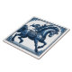 A lapis stallion, frozen mid-stride, embodies botanical majesty on this ceramic tile. Detailed floral patterns, reminiscent of delicate blossoms, flow across the horse's body, flowing mane, and tail, extending to its decorative saddle or harness. The artist masterfully captures the animal's powerful muscles and fluid movement. A border of intricate floral designs in the same deep blue hue frames the image. The symmetrical composition and a slightly elevated perspective emphasize the horse's dynamic posture. Muted colours and soft lighting create a serene, vintage atmosphere, reminiscent of classic tile art. This meticulously rendered design exudes classic beauty and artistry.