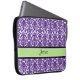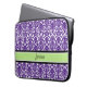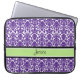 Laptop case with fun and modern dark purple, chartreuse lime green, black and white floral damask vintage pattern. Personalise this case with your own name or other custom text to create a truly unique case. Contact us to request a colour change.