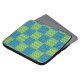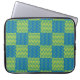 A smart Neoprene sleeve to protect your Laptop (up to 17"), with a 'patchwork' geometric pattern in trending Emerald Green, Monaco Blue and Tender Shoots Green, with contrasting black binding.