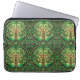 Laptop sleeve with vibrant tree of life pattern in green, featuring intertwined branches and leaves within circular frames. The design is repeated and symmetrical.