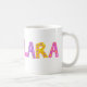 Fun graphic flowers and stars, purple, yellow, and pink doodle bold lettering Lara mug. Ideal for a personalised gift for a girl with the name Lara, it comes with a researched name meaning for Lara. Graceful. Beautiful, bright, and elegant or you can customise the text with your own name and definition words if required or a gift message. Ideal as a special birthday or celebration gift. If you need help with your own personalised name please contact me. Graphic pink, purple, yellow on white letter art uniquely created by Sarah Trett for www.mylittleeden.com and namesense