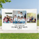 Large custom family reunion banner with a 3 photo collage and personalised with the family name, year, and any text you want to include like the place of the vacation or a custom message. To change the photo placement: click on the button to customise it further, click on "crop", and move the image.