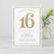 LARGE AGE NUMBER INVITE modern 16 gold glitter