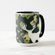 Big buck - whitetail deer silhouette over green camo background. Deer hand drawn by ©Tina Hesskew of Fishing Hunting Life.