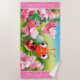Large beach towel Ladybug flower garden.