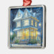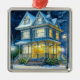 Large Beautiful Victorian House at Christmas Metal Ornament