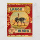 Vintage book cover for an animal book. Ostrich with "Large Birds" in gold and red
