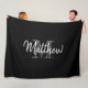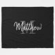 Large black and white fleece blanket with monogram. Personalised design with first name or family surname. Make your own unique blanket for him and her. Elegant Birthday or Christmas gift idea for men, women, couple, newly weds, bride and groom, family, friends, coworker etc. Cosy accessories for sofa, couch or bed in bedroom. Available in small, medium and large size.