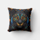 Large Black Cat Mosaic stained Glass effect Cushion . Colorful Orange eyes set on a black stained glass background with blues and green tiles.