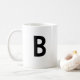 Custom ceramic mug with large black initial on front and back in modern minimalist style. Personalise the monogram letter using the text box. Great gift idea for families, couples, coworkers, teachers, or roommates. Perfect for home, office, dorm, or coffee bar. Stylish black and white design fits any modern kitchen. Use as custom letter mug, personalised name mug, or initial gift for birthdays, holidays, or housewarmings. Available in multiple sizes and styles and if you enter the Zazzle Design Tool you can change the colour of the letter to match your interior colour palette.