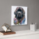 LARGE BLACK WATERCOLOR NEWFOUNDLAND DOG SQUARE WALL CLOCK