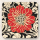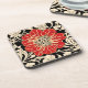 Coaster in a large, red, camellia flower, in an Art Nouveau inspired style, with a floral background in beige on black