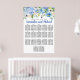 Beautiful blue hydrangeas create an elegant watercolor border at the top of this large 17-Table seating chart. A dash of purple hydrangeas give it depth and creamy white flowers keep it light and airy. Green, leaves and dangling vine, give it just a touch of Boho style. The wedding couple names are written in a bright blue trending script font. This blue floral seating chart is part of the Blue Hydrangea collection that contains signs, programs, menus, place cards and table decor that let you easily and affordably personalise your wedding ceremony and reception. You should see a link to it on this page. If you can' t find the link or need help with an item, please contact me.