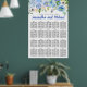 Beautiful blue hydrangeas create an elegant watercolor border at the top of this large 20-Table seating chart. A dash of purple hydrangeas give it depth and creamy white flowers keep it light and airy. Green, leaves and dangling vine, give it just a touch of Boho style. The wedding couple names are written in a bright blue trending script font. This blue floral seating chart is part of the Blue Hydrangea collection that contains signs, programs, menus, place cards and table decor that let you easily and affordably personalise your wedding ceremony and reception. You should see a link to it on this page. If you can' t find the link or need help with an item, please contact me.