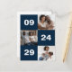 Save the date postcard with large bold numbers in white on navy blue. Place for three of your special photos. Back has Save the Date, first names in script font, Are Getting Married and a place for your wedding information. Perfect for those who like typography and simplicity with style.