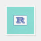 Large Bold Outlined Blue Monogram on Light Teal Napkin