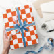 Large Bright Orange and White Checks Wrapping Paper
