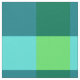 Large scale modern take on a classic gingham plaid fabric in light aqua, deep teal blue and teal green, and light lime green