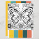 Immerse yourself in the art of colouring with our elegant colouring card, now available in a larger 6.5" x 8.75" format, designed specifically for adult women who appreciate both creativity and relaxation. This card features beautifully detailed butterfly line art complemented by a carefully selected colour guide, making your colouring choices easy and enjoyable. The palette, featuring vibrant shades of yellow, orange, turquoise, and teal, brings each butterfly and flower to life, transforming them into stunning works of art.
