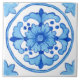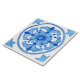 This tile is large (6 in x 6 in) and features a central floral motif in a hand-painted design made to re-create the feeling of individually painted ceramic tiles.
