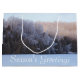 Designer landscape winter-scene in soft and delicate greys, a hint of blue. Unisex design for any special occasion. Personalise the text for Christmas gift giving, or text is removable.