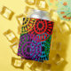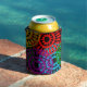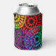 This can cooler has a Black History design of large circles formed from raindrop shapes and circles in red, yellow, purple, green, and turquoise.