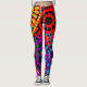 These leggings have a Black History design of large circles formed from raindrop shapes and circles in red, yellow, purple, green, and turquoise.