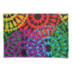 This pillowcase has a Black History design of large circles formed from raindrop shapes and circles in red, yellow, purple, green, and turquoise.