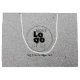 Available in matte or glossy finish, promotional gift bags custom branded with your business logo add a professional touch to your corporate gifts, giveaways, and retail shopping bags while advertising your business. Made by Digiwrap. No minimum order quantity and no setup fee. This bag is set on simulated cool grey toned recycled particle paper printed background texture.