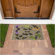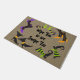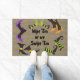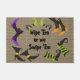 This large funny Halloween door mat features unusual witch boots strewn over a rustic faux burlap doormat, with the editable words Wipe 'Em or we Swipe 'Em in seasonal text. From Heard_. #FunnyHalloween #Halloween