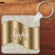 Large Gold Monogram, White Script Name, Diamonds K Key Ring