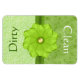 Stylish dishwasher magnet, in a green swirl pattern, and a paisley pattern, with the white text reading Clean, on one half of the magnet and green text reading dirty, on the other half. Pretty graphics of a green ribbon, across the middle is decorated with a green flower. Makes a great hostess gift.